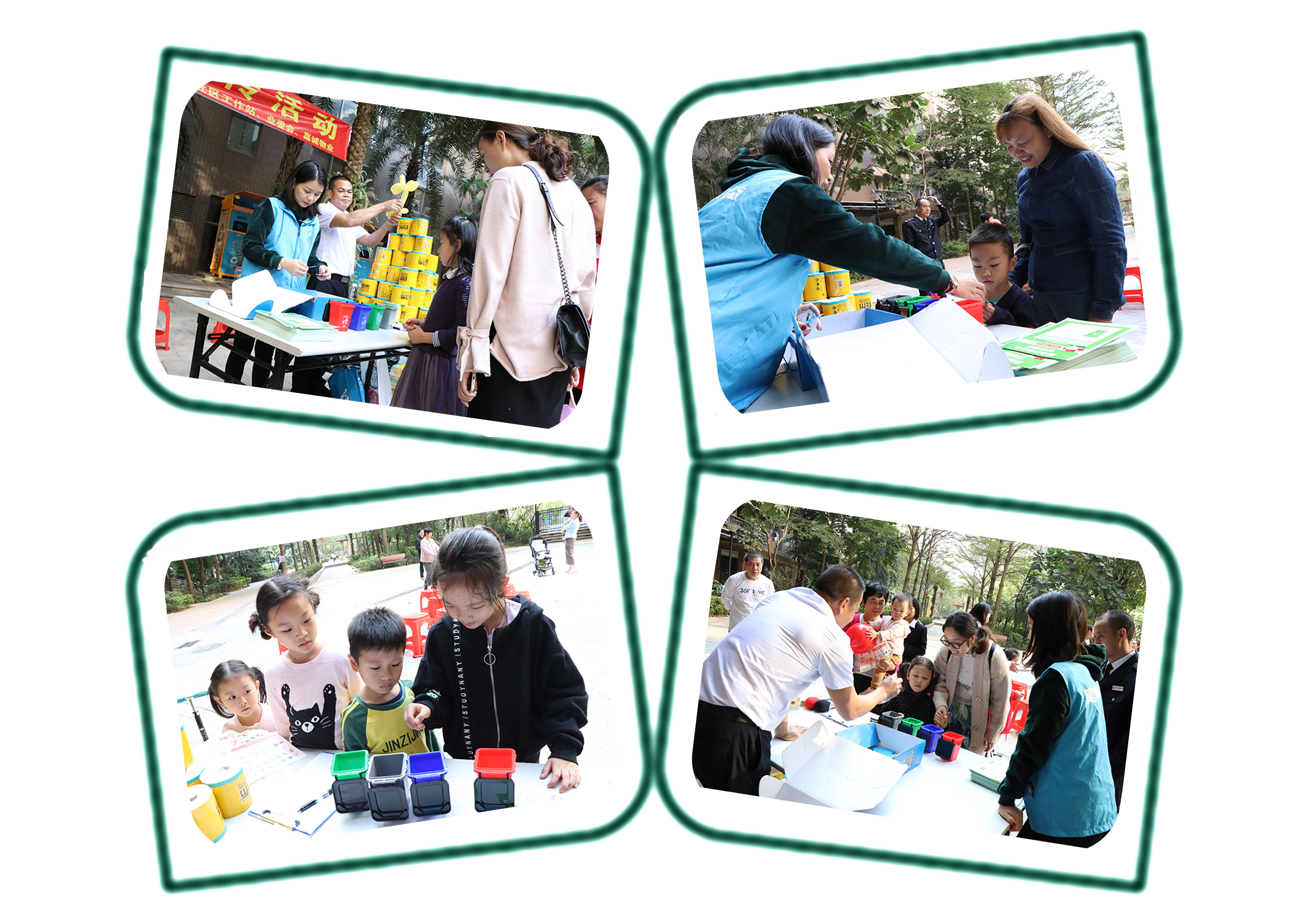 活动现场准备了垃圾分类小卡片、设立垃圾箱模型等物品,通过“垃圾快速投放”小游戏,让参与者快速区别垃圾种类,正确投放;使用棋盘和骰子等物品为道具,通过“大富翁”的小游戏,让小朋友清楚的知道垃圾的种类,从而更好的认识垃圾该如何分类,从小抓起,让小朋友们从小就养成垃圾分类的好习惯。