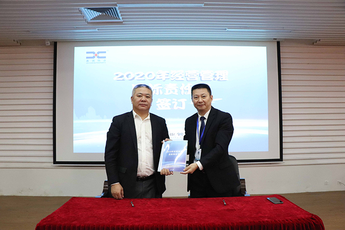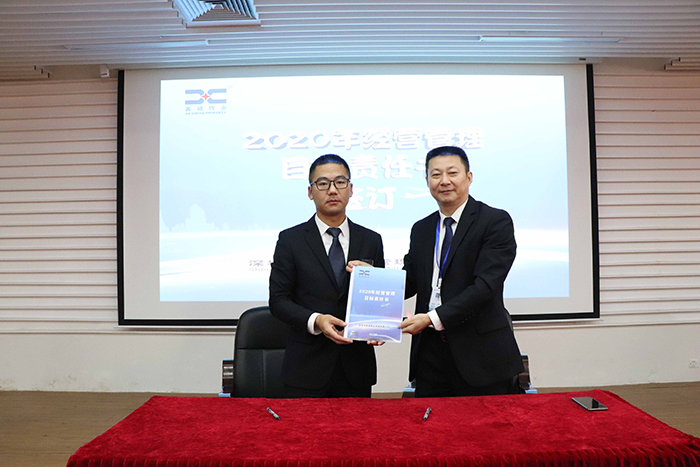 企业的进步与强大从来不会只看过去,还要展望未来,荣誉是你能力的展现,也只代表过去的事迹,未来的发展才是你和公司需要,计划和目标也是公司日益强大的根本,各类型项目代表出席与公司总经理签订2020经营目标责任书。