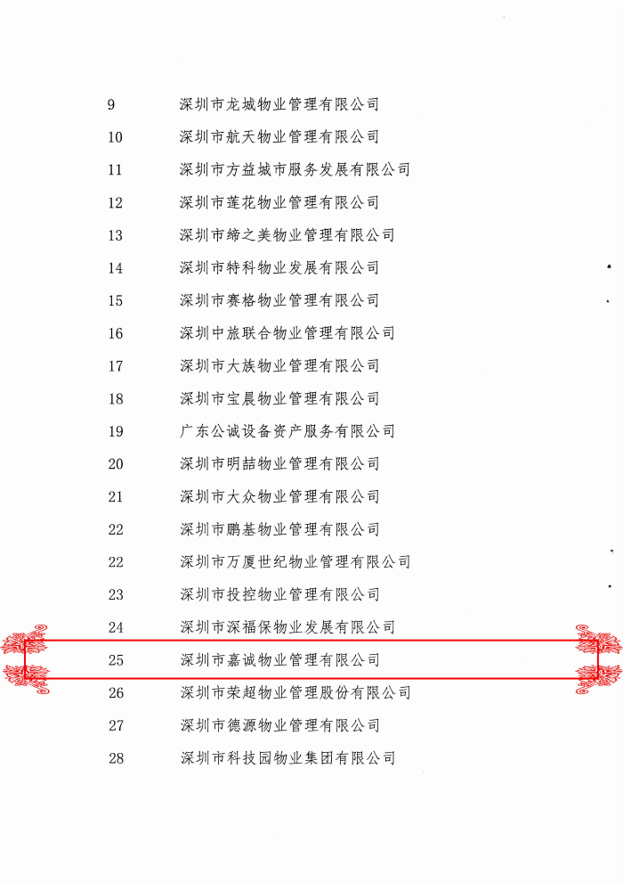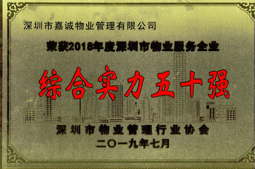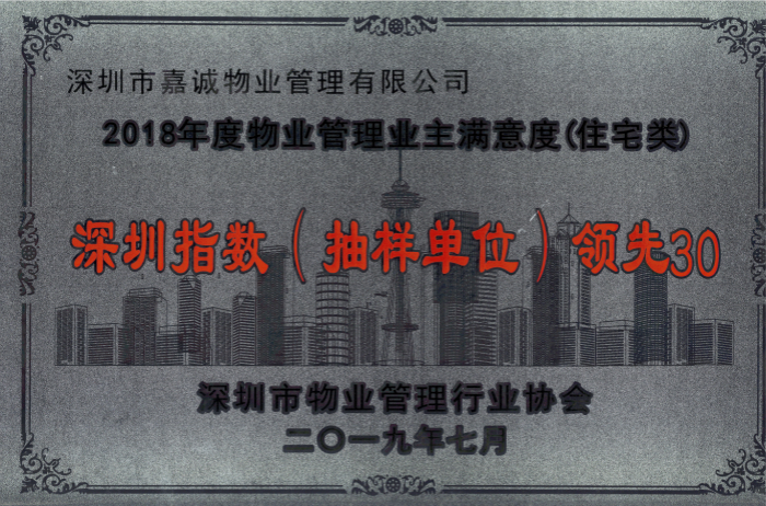 嘉诚物业荣获2018年度深圳市物业服务企业