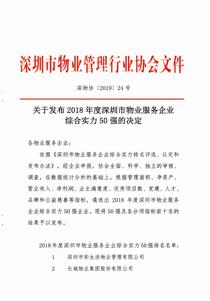 会议发布了《2018年度深圳市物业服务企业综合实力50强排名分析报告》。报告显示,今年的50强企业综合排名活动在往年的基础上,调整了指标体系,