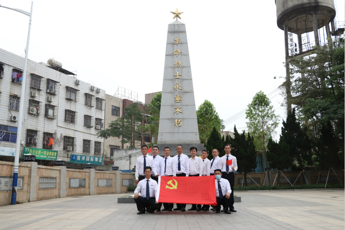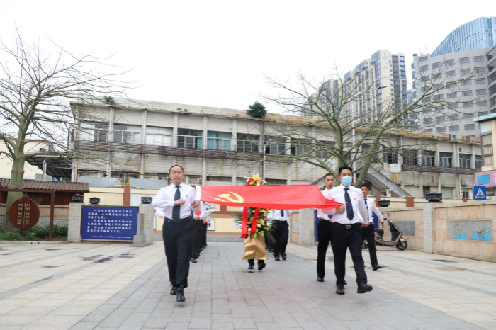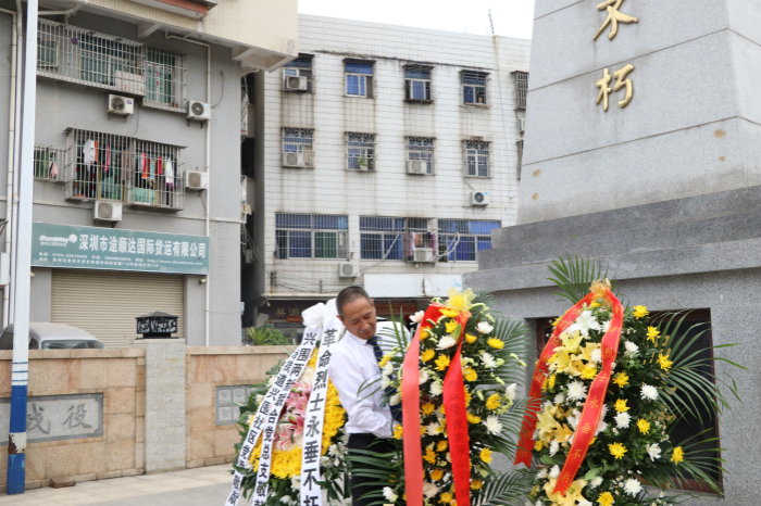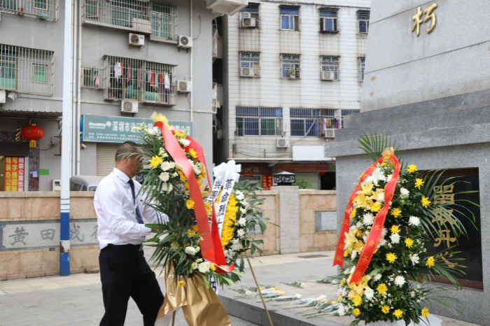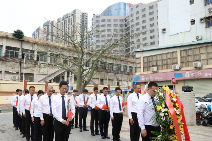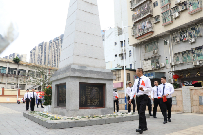 4月4日的宝安区烈士陵园,苍松翠柏,绿树鲜花,庄严肃穆。9时30分,嘉诚物业党支部祭扫活动正式开始,四名执旗手擎着一面鲜红的中国共产党党旗,踢着正步走在两排队伍正前方步入陵园,在烈士纪念碑前广场立正,全体唱国歌,国歌唱毕,全场肃立,向烈士默哀一分钟; 在深情的《献花曲》中,周元发书记双手端着花篮,缓步走向纪念碑,放在基座正中间,并上前仔细整理花篮缎带;随后,参与祭扫的人员在周书记的带领下,瞻仰烈士纪念碑并献花,参观烈士陵园相关展览,全体人员合影留念,一场寄托哀思,致敬先烈的祭扫活动就这样圆满结束!