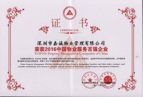 热烈祝贺深圳市嘉诚物业管理有限公司荣获2015年度深圳市物业服务企业综合实力50强、2016年度中国物业服务百强企业!