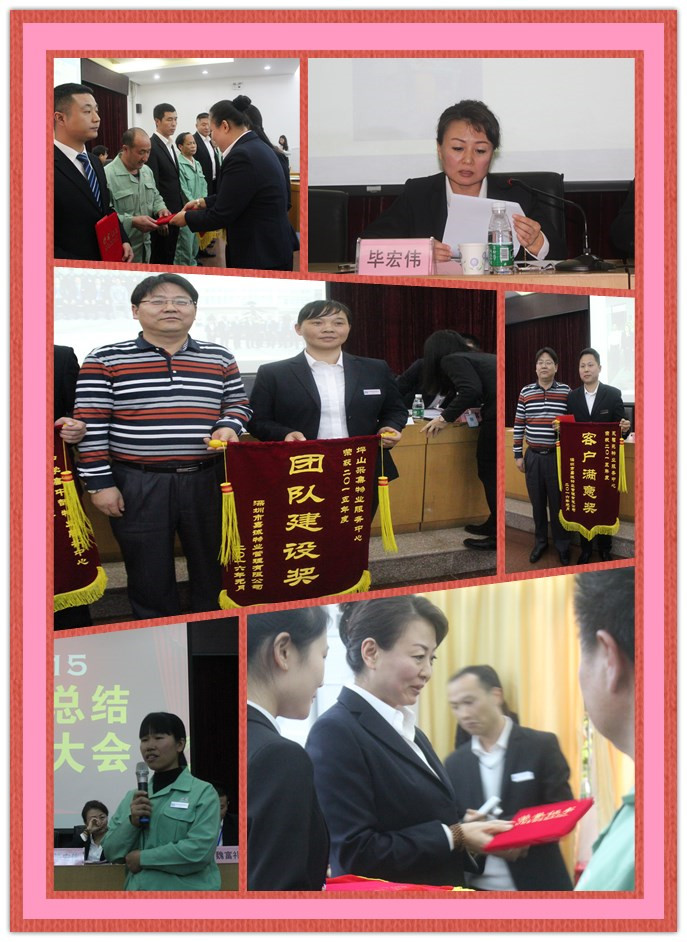 公司的发展壮大离不开每位员工的努力工作,在过去的2015年里公司涌现了大批爱岗敬业、技能突出及客户满意的优秀个人与团队,公司副总经理毕宏伟女士高兴宣布了获奖的名单并现场颁奖,员工代表纷纷上台发表获奖感言、物管心得及心路历程,黄田小学一保洁员大姐坦言:因为公司规模庞大,项目多而分散,平时只在自己负责的区域项目里工作,这次能参加如此大规模的聚会,第一次如此近距离见到了公司老板及高层领导是那么的和蔼可亲,心里无比的激动和兴奋,对公司也有了一个全新的整体认识与印象,增强了公司凝聚力与战斗力!虽然自己从事的只是简单的保洁工作,但能得到公司领导及客户的满意是自己最大的动力,今后将会更加努力,把简单的事情做好就是不简单!